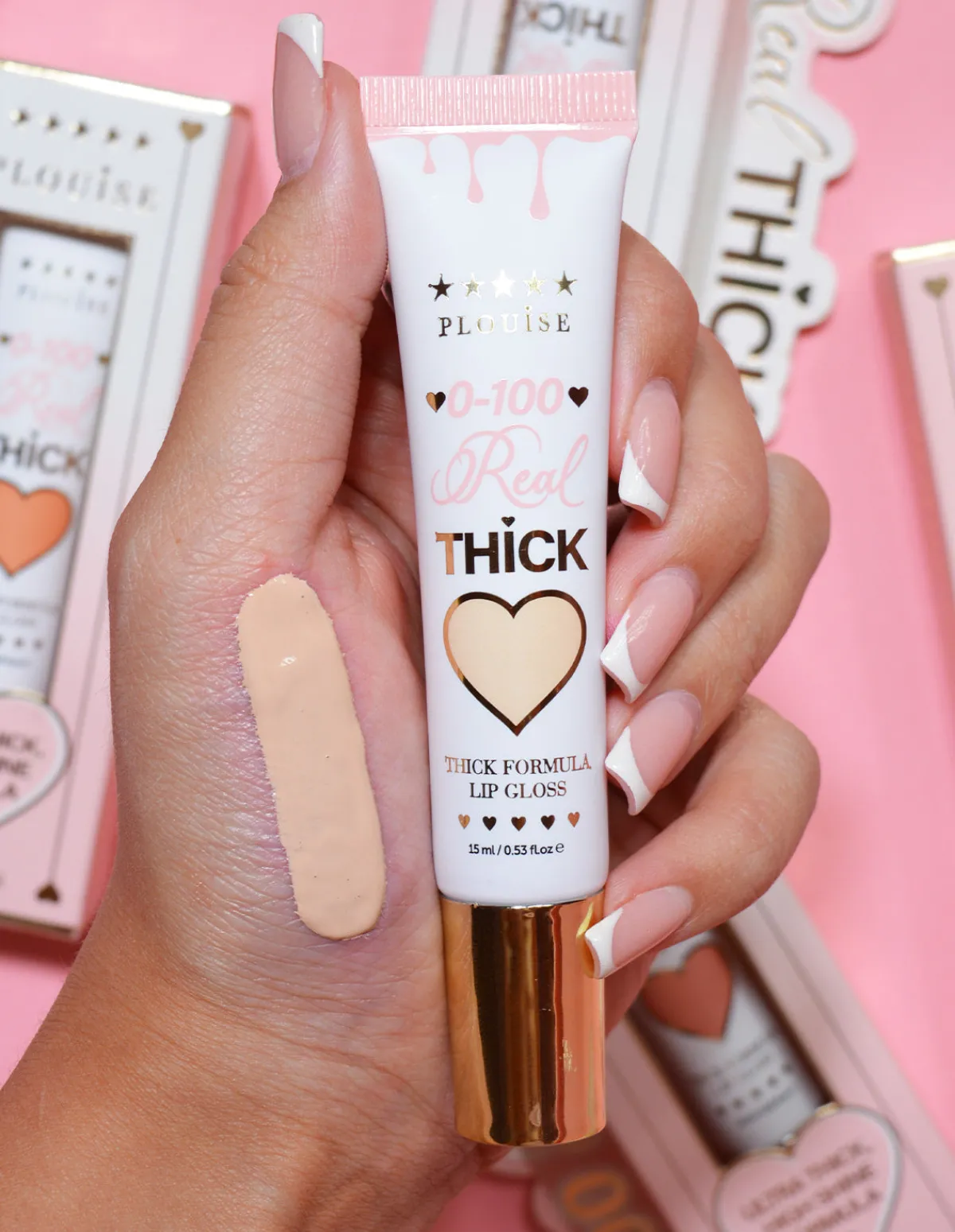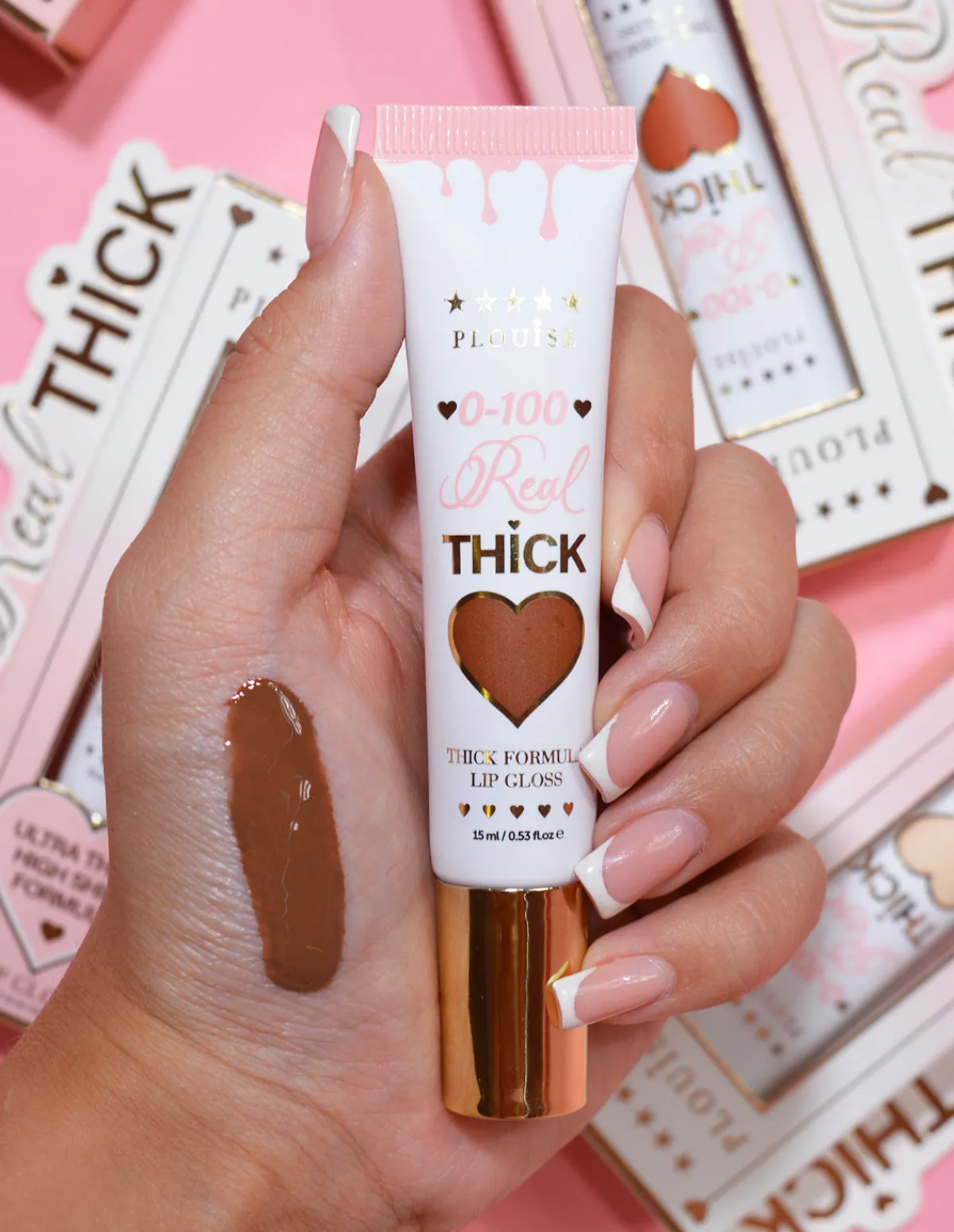 0-100 Real Thick Gloss is a ultra thick, high shine formula that coats the lips in a lacquer of gloss that provides a fully opaque finish allowing this one product to do all the work with no lipstick needed.