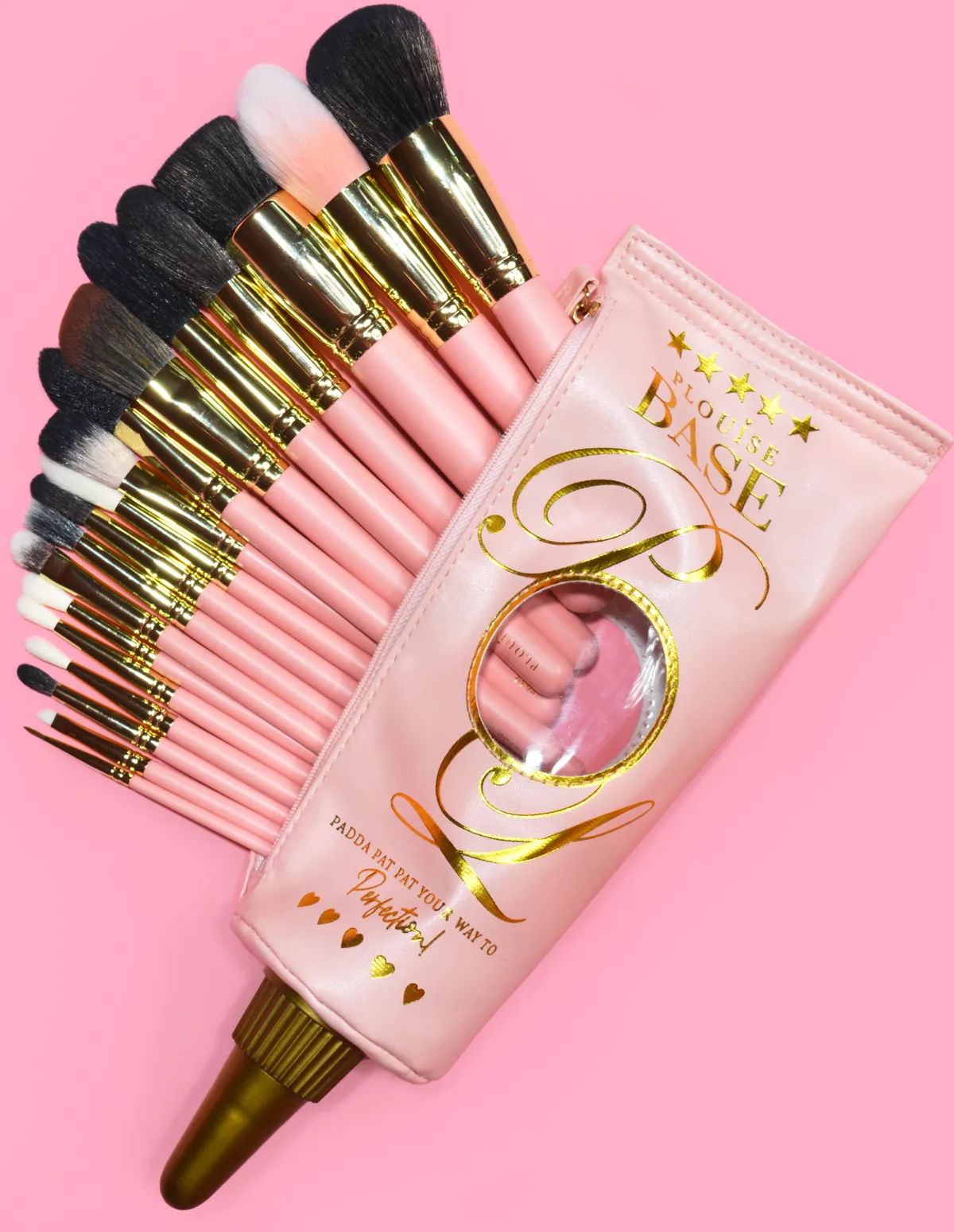 An artist is only as good as their tools babe and it’s your time to padda Pat Pat to perfection to level up your makeup game. Say hello to the ultimate 18 piece brush set found inside the cutest revolutionary base inspired brush bag. All brushes in this set are synthetic.