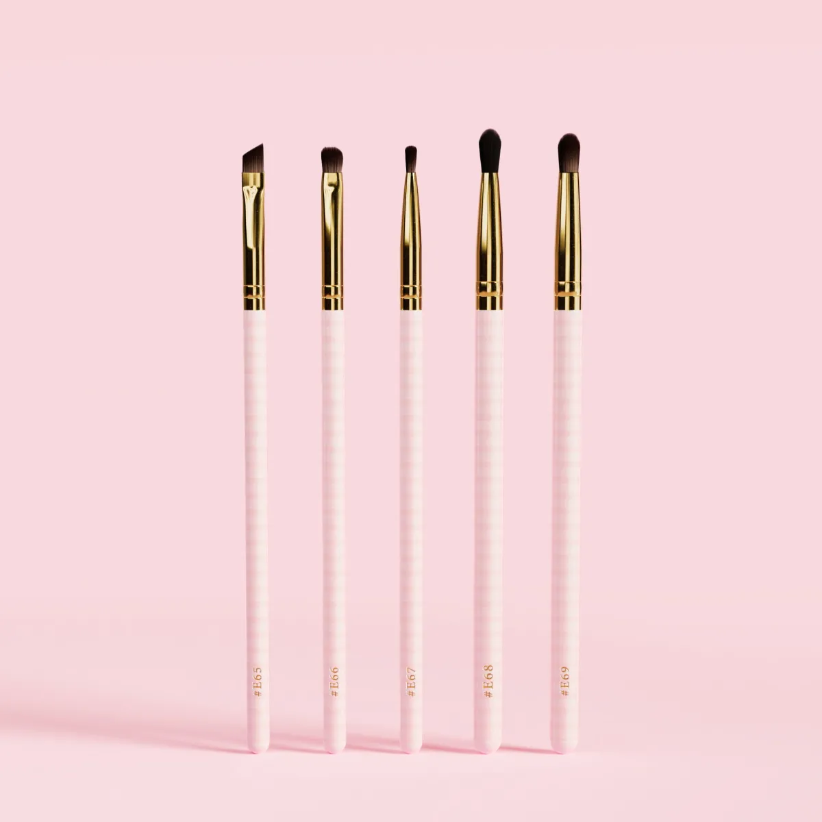 E66 – a small, angled detailer blending brush. Suitable for smoking shadow along the lash line or creating the perfect smokey wing.