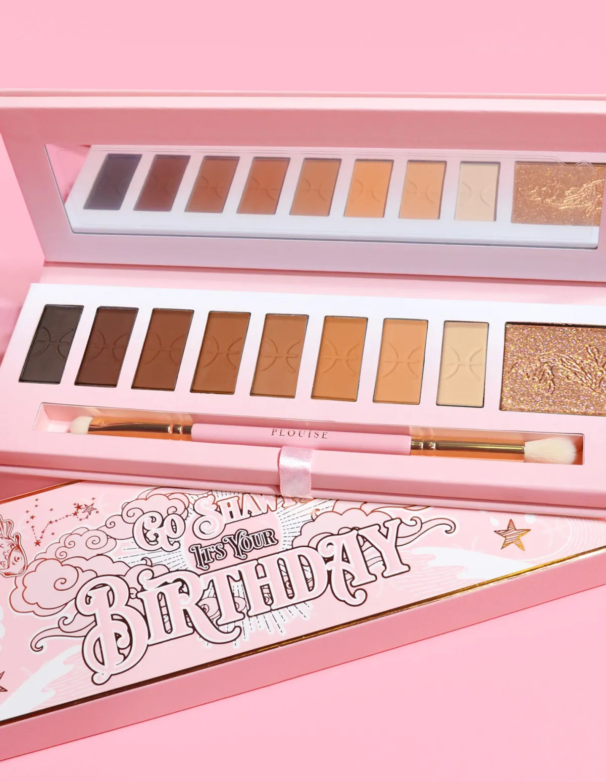 Our Brand new Birthday palette is inspired by the SHE-O herself and all the tones she loves to wear on herself day to night. This marvellously matte palette is the perfect go to, complete with a decadent highlighter and double sided brush what more could you need?